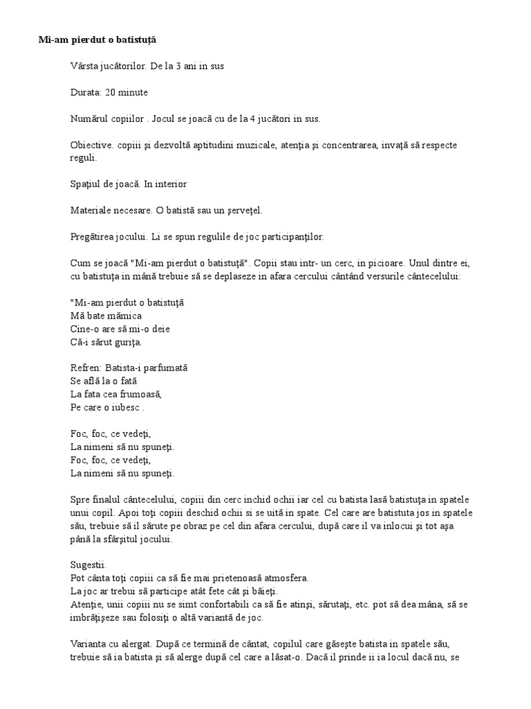 Am pierdut o batistuţă cine a găsit o eu îl rog ca să mi o dea şi l sărut îndată. Am pierdut o batistuta ma bate mamica. De la am pierdut o batistuță la sunt o mască frumușică. Versurile noii copilării cu florian mirel alecu și octavian hoandră capital ro de la am pierdut o batistuță la sunt o mască frumușică.