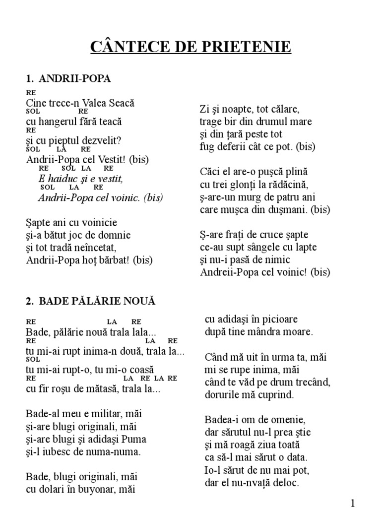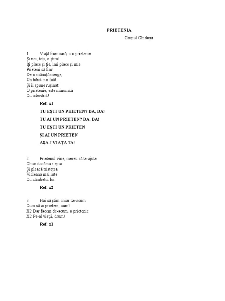Cantece Despre Prietenie