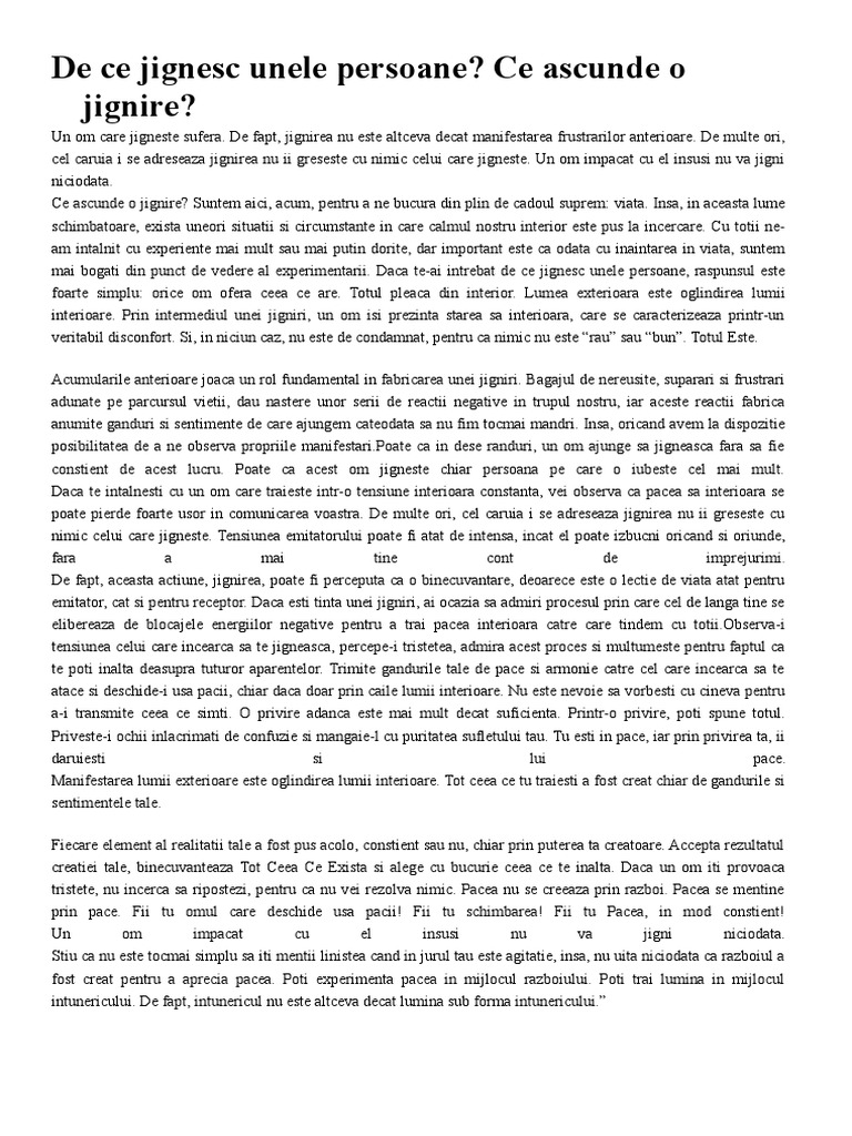 Ce ascunde o jignire. De multe ori cel caruia i se adreseaza jignirea nu ii greseste cu nimic celui care jigneste. Cu totii ne am intalnit cu experiente mai mult sau mai putin dorite dar important este. Ce ascunde o jignire. Suntem aici acum pentru a ne bucura din plin de cadoul suprem.