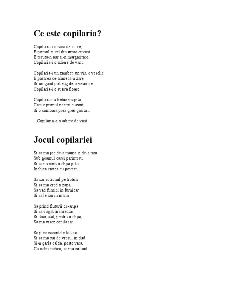 Copilaria i o adiere de vant. Copilăria este un tărâm magic. Amintiri din copilărie de i. Ne trezim doar că numai suntem copii că am ieşit din copilărie uneori fără să o fi trăit pe deplin.