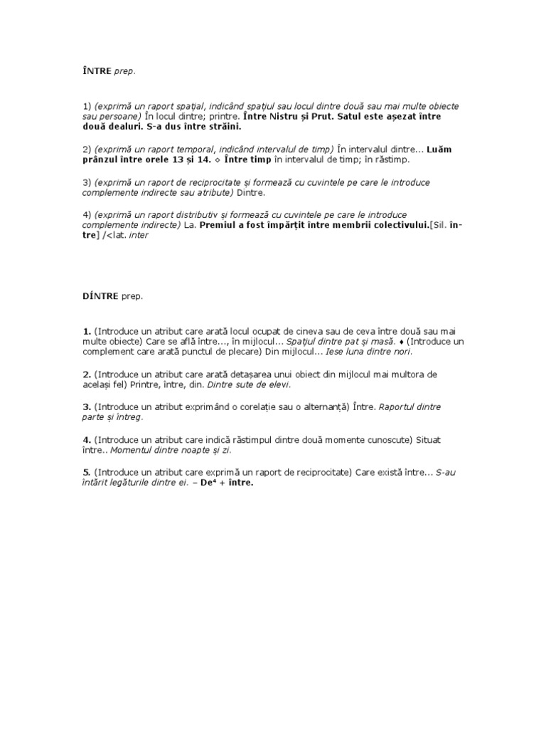 Exprimă apropierea sau respingerea în cadrul unor elemente diferite. Avem vacanță între 22 și 24 iunie distanța dintre bucurești și istanbul este de 650 de kilometri. Totodată prepoziția dintre introduce un atribut care arată detaarea unui obiect din mijlocul mai multora de același fel. Iată un exemplu concludent.