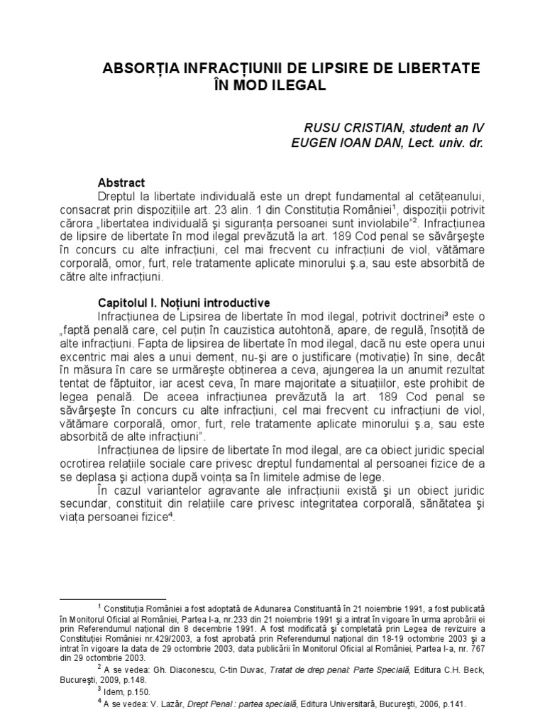 Infracţiunea de lipsire de libertate. Jurisprudență reviste 4 2 se consideră lipsire de libertate și răpirea unei persoane aflate în imposibilitatea de a și exprima voința ori de a se apăra.