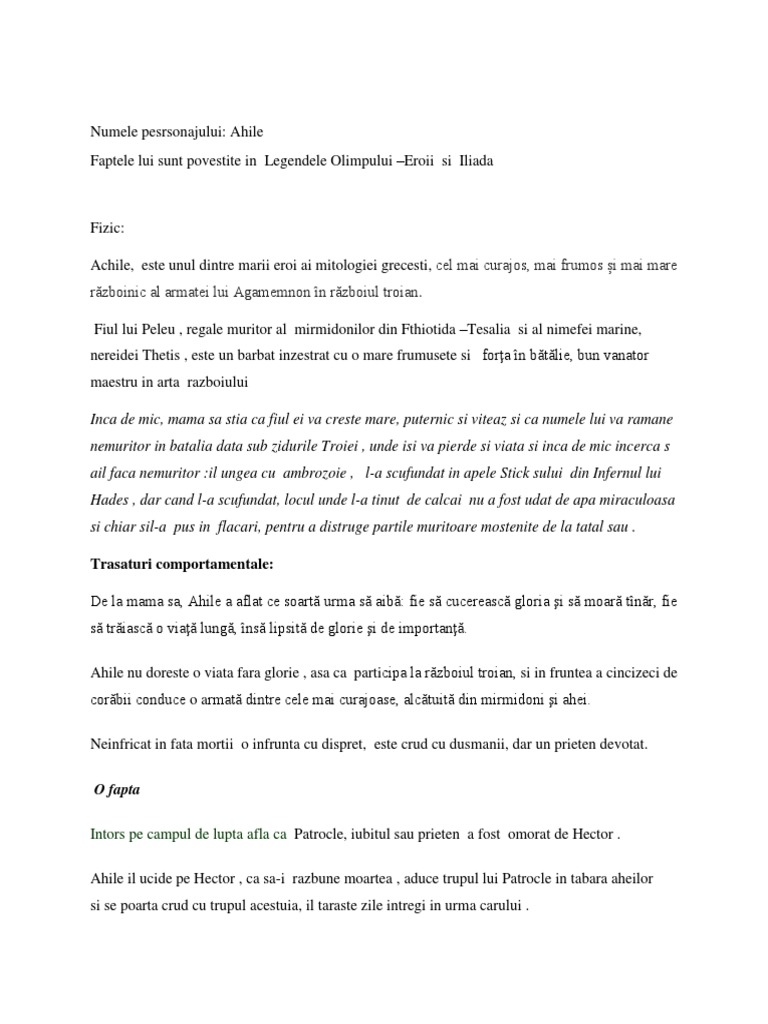 Mama lui ahile. Mama lui pentru a l face nemuritor l a ținut într un foc divin sau în unele relatări în râul styx. împreună cu această armură hephaestus a făcut un scut spectaculos cunoscut sub numele de scutul lui ahile. La urma urmei el nu a vrut un episod repetare a ceea ce sa întâmplat cu său propriu tata. Unul dintre cei mai mari eroi greci prota gonist al iliadei potrivit mitului povestit de homer ahile era fiul lui peleu regele mirmidonilor din ftiotida în tesalia mama lui era o nereidă thetis.