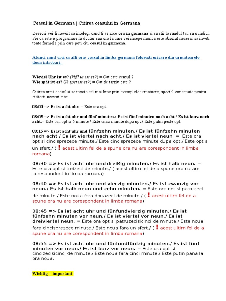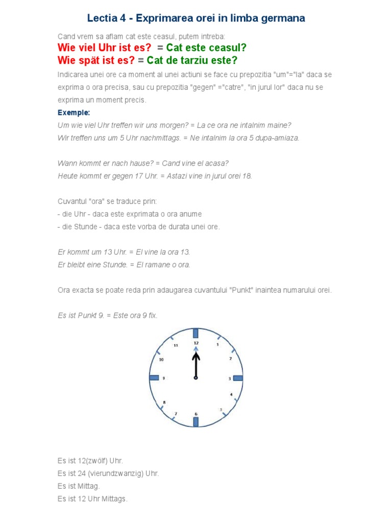 Es ist ain ur. Tot aici veti invata sa raspundeti la intrebare cat este ora. Adaugă la locațiile favorite. Ora ceasul in limba germana.
