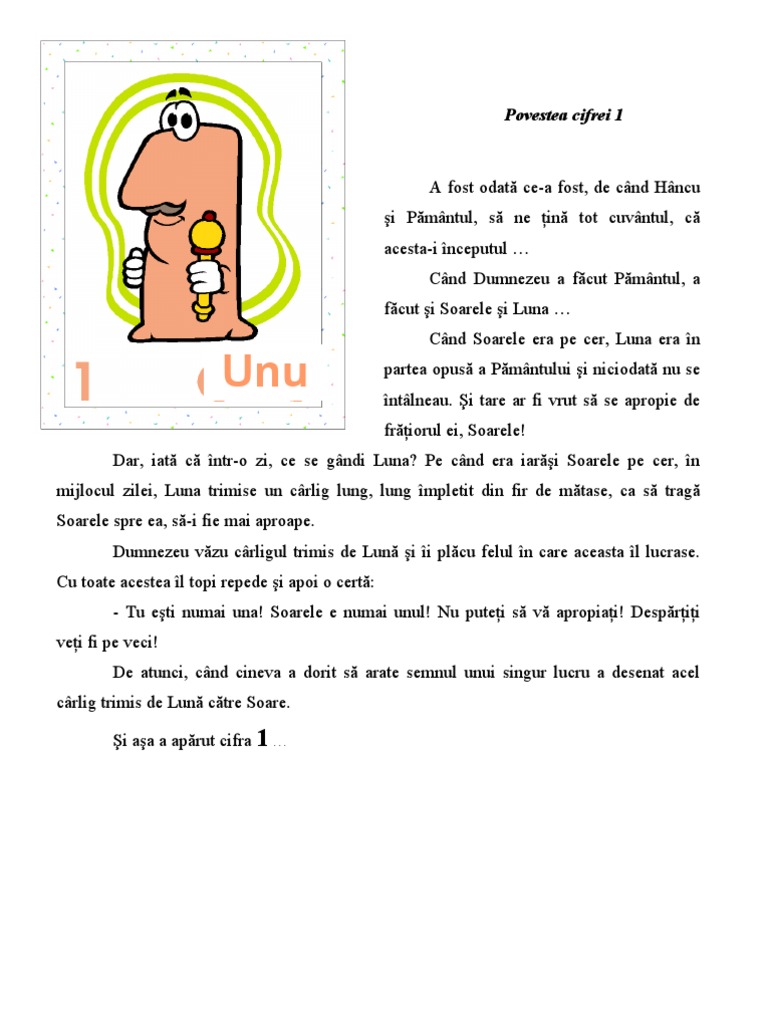 Povestea cifrei 1 a fost odată ce a fost de când hâncu şi pământul să ne ţină tot cuvântul că acesta i începutul când dumnezeu a făcut pământul a făcut şi soarele şi luna. Povestea cifrei 1 a fost odată ce a fost de când hâncu şi pământul să ne ţină tot cuvântul că acesta i începutul când dumnezeu a făcut pământul a făcut şi soarele şi luna. Prima pagină învăţământ preşcolar domeniul ştiinţă dş proiecte educaţionale povestea cifrei 1 povestea cifrei 1 29 august 2009 20 59. Ca sa nu se friga atunci cand pune legumele in oala a inventat o unealta.