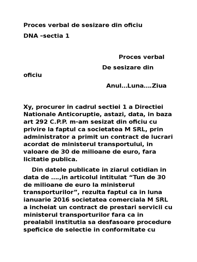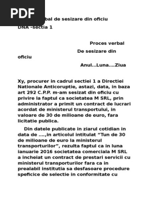 289 291 şi încheie un proces verbal în acest sens. Modurile de sesizare 1 organul de urmărire penală este sesizat prin plângere sau denunţ prin actele încheiate de alte organe de constatare prevăzute de lege ori se sesizează din oficiu. 289 291 si incheie un proces verbal in acest sens. Sesizarea din oficiu reprezintă modalitatea de sesizare internă care constă în posibilitatea dreptul şi obligaţia organului de urmărire penală de a se sesiza din oficiu ori de câte ori află pe altă cale decât prin denunţ sau plângere că s a săvârşit o infracţiune.